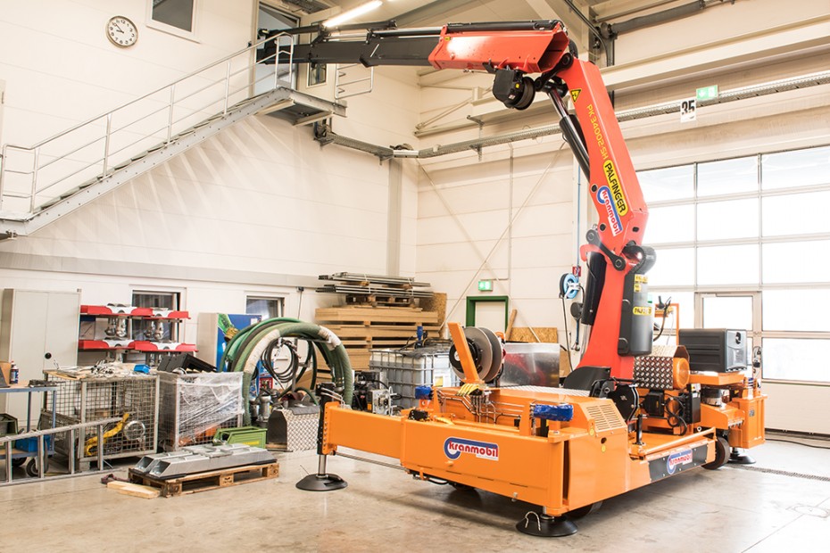 Das kran mobil PK34 hebt verlässlich und sicher bei Aufbau, Montage und Wartung und ist einfach in Ihre Produktions- oder Messehalle zu transportieren, da es mit seiner geringen Größe auf einen Tieflader passt.